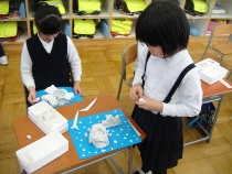 図工の時間に粘土で冬休みの思い出を作りました。楽しかった事がたくさんあったので、困ってしまいました。