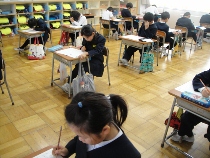 2年生から4年生は、前期に学習した内容の定着度を調べるために、学力試験を行いました。いつものテストよりも問題の数が多かったのでびっくりしたようです。わからないのではなく、時間が足りなかったようです。