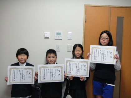 秋に行われた「読書感想画コンクール」に2年生と5年生が挑戦しました。4人の人が入選しましたので本日校長室で伝達しました。おめでとうございます。