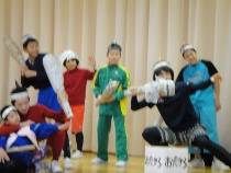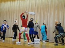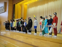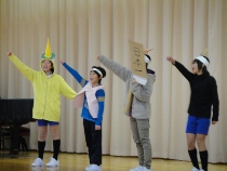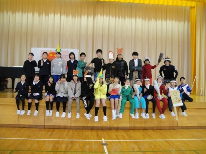 今回のはつらつ集会は6年生からの発表でした。これまでの学年の発表は、群読や音楽の発表が中心でしたが、6年生は英語の劇に挑戦しました。自分たちでアレンジした劇「ももたろう」は、みんなを楽しませてくれました。卒業にむけて学級がまとまってきた様子がよくわかる発表でもありました。