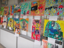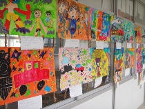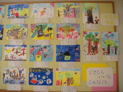 2年生が物語の絵を描きました。頭の中にイメージをいっぱいにふくらませました。