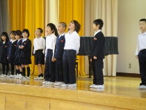 1年生が元気いっぱいに詩を発表してくれました。特に、自分たちで作った「鳥越小学校の詩」は素晴らしかったです。