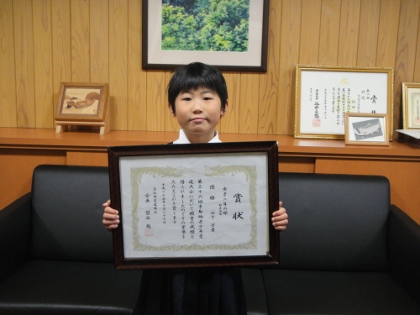 二つの柔道の大会へ出場し優勝したことを報告に来てくれました。おめでとうございます。