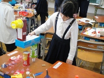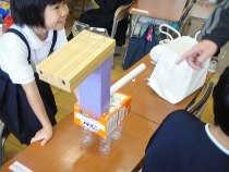 図工の時間に空箱を使って、いろいろな動物を作りました。1年生は、図工の時間が大好きです。