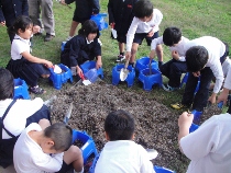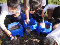 生活科の授業でチューリップの求婚を植えました。春には大きくてきれいな花が咲きますよ