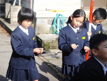 全校で俳句作りをしました。2年生は、学校のまわりを、五・七・五と指を折りながら秋を探しました。