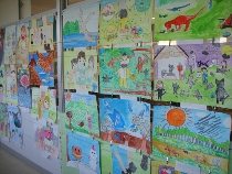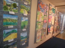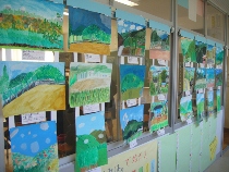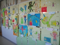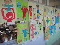 1年生は絵の会で紙版画に挑戦しました。白と黒で昆虫と遊ぶ自分を表現しました。