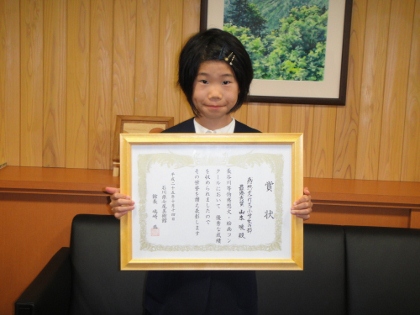 今月14日に「長谷川等伯感想文コンクール」の表彰式がありました。本校の山本暖さんが小学生の作文の部で最優秀賞を受賞しました。とても、素晴らしい作品でした。