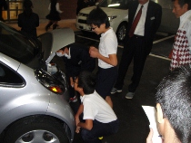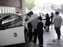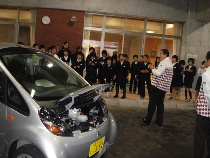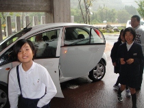 5年生は社会科で自動車工業の勉強をしました。今日は、白山麓の4つの小学校が集まり、電気自動車の仕組みを勉強しました。自動車が出来るまでの流れを勉強した後、実際に電気自動車に試乗しました。何と言っても静かな走りでした。