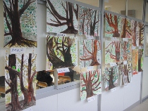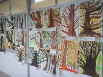 3年生は、五十谷の大杉を描きました。長い年月風雪に耐えながら成長した木を表現しました。
