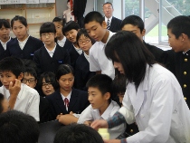 6年生が中学校へ部活動の見学に行きました。中学校の生活の様子を聞いた後、実際に部活動を体験してみました。種類はあまりありませんが、今からどの部活動に加入しようかと迷ってしましました。