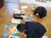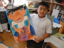 2年生は絵の会で芋掘りの様子を描きました。大きなサツマイモをニコニコな顔で掘り上げている様子が素敵です。