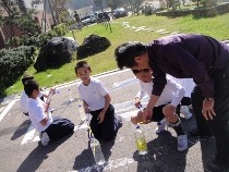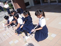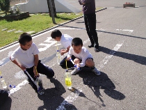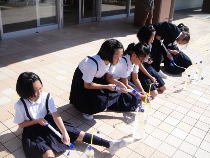 理科の時間に「空気と水」の変化について勉強しました。力を加えるとどうなるのかなといろいろな実験をしました。今日は空気と水の性質を利用して、噴水をつくりました。