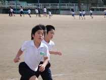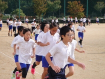 秋晴れの午前中、元気いっぱいにグランドを走りました。
