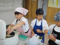 3年生は、総合の学習で米作りについて勉強しました。今日は、その仕上げの勉強です。丹精込めて育てた蛍米でおにぎりをつくりました。とても美味しかったです。