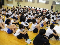 昼休みに給食室から出火したという想定で避難訓練をしました。休み時間ということで、放送をしっかり聞かずに行動したり、集合場所でふざけたりしている人が目立ちました。そんな中で5年生と6年生はさすがでした。お(押さない)は(走らない)し(喋らない)も(戻らない)の約束を守って整然と行動することが出来ました。下級生に対して、素晴らしい見本になりました。