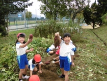 ふといつるを力一杯ひっぱっても、なかなかいもはぬけません。
