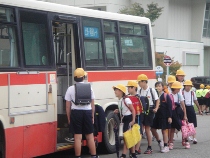 台風の被害が心配された今日の下校でしたが、高学年が低学年をしっかりリードしながら下校しました。