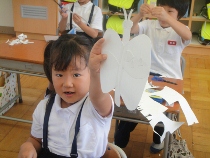 1年生は、紙はんがで昆虫をつくりました。図鑑を見ながら思い思いに表現していました。なかなか納得できない子もいたりして、一人前の芸術家のようでした。