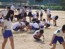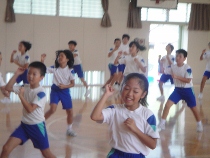3,4年生の団体演技の様子です。なかなか音楽に合わせることができませんでした。でも、少しずつ練習してすぐに上達すると思います。本番が楽しみです。