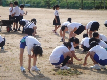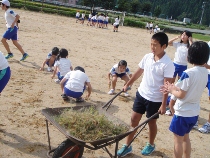 今月の終わりには運動会が予定されています。今日は、一限目の勉強が始まる前に運動場の草をとりました。夏休み前は、一本もなかった草も、夏の暑さと雨のおかげで急成長していました。みんなで力を合わせて作業をしましたので、短い時間できれいになりました。残りは、環境整備作業の日にきれいにしましょう。