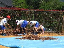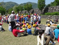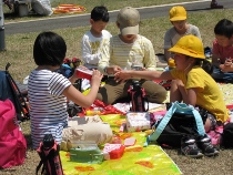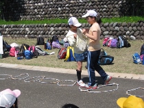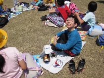 5.6年生が中心となってバードハミングからサイクルランド・吉野オートキャンプ場へチエックポイントのクイズをクリアーしながら活動しました。目的地では、ケンケンじゃんけん・集団輪くぐりなど楽しくゲームしました。ゲームの進行、集団での行動など高学年は頑張っていました。なによりたてわり班のグループのメンバーを意識し、みんなで行動できたことが今後の成長につながると感じました。