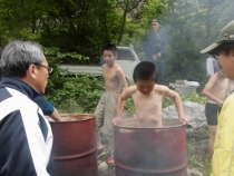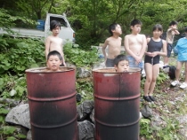 鳥越・河内・白嶺・白峰の小学校が集まり、集合学習が行われました。こうれいのイワナつかみは、天候も曇りで、川の水が冷たかったですが、とても美味しくいただきました。最後のドラム缶風呂は、♪あたかぃ~んだから~♪。