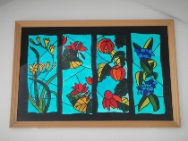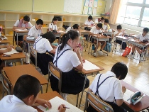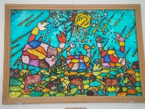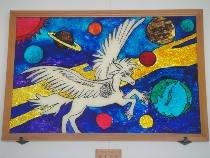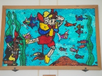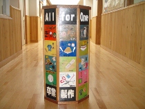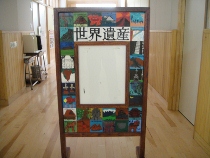 夏休み中の子どもたちのいない学校を探検してみました。たくさんの卒業制作が展示してありました。どれも力作ばかりでしたので、皆さんに公開する方法を考えていました。卒業生もホームページを見ることがあるかもしれないと思いましたので、ここで紹介することにしました。懐かしい作品をゆっくりとご覧になってください。
