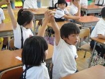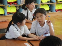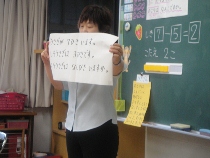 一年生が算数の研究授業を行いました。これまでは、「残りはいくつ?」と聞かれたので、すぐに引き算だとわかりましたが、今日は、そんな言葉がありませんでした。じっくり考えて、引き算の秘密を見つけることができました。