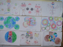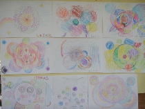 コンパスでいろいろな円を描きました。うまく組み合わせて色を塗るとこんなに素敵な絵になりました。