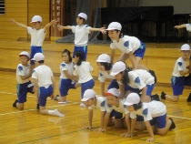 今回の発表は、元気いっぱいの四年生でした。全員で挑戦した組み体操では、ピラミッドをきっちりと作ることができました。