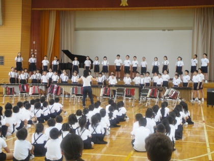 明日は市内小学校の音楽会です。鳥越小学校は、5,6年生が出場します。前日にあたる今日、保護者の皆さんも招待して発表会を行いました。力強い演奏と澄み切った歌声に聴き入っていました。