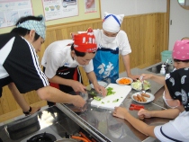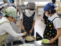 家庭科の時間に野菜炒めに挑戦しました。普段から家でお手伝いをしている人もたくさんいるようでした。調理が上手なグループは、常にテーブルの上が整理整頓されていました。それどころではないグループもありましたが、実習の時は、片付けに心がけることができるといいですね。