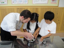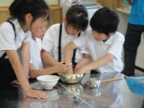 4年生がヨモギ団子作りに挑戦しました。食べたことのない人もたくさんいました。食べてから「ああ、あの味だ。」と気づく人もいました。今日はデイビットも一緒に日本の味を堪能しました。