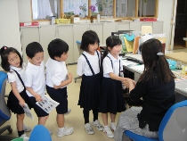 1年生は、学校で働く先生方と仲良くなる勉強しました。自己紹介の後、「〇〇先生、握手してください。」と元気にお話することができました。授業中は、ほとんどの先生が職員室にいませんので、休み時間は大忙しでした。