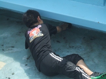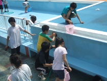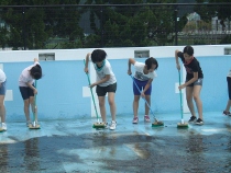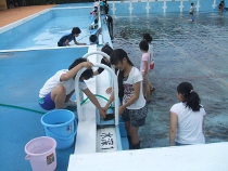 5、6年生は冷たい水を浴びながら、藻で汚れたプールの中を一生懸命にみがいてくれました。おかげで、とってもきれいになりました。
