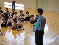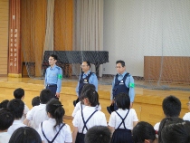 避難した後、警察官の方から、安全についてお話してもらいました。鳥越地区は、比較的安全な地域ですが、不審者の侵入が絶対ないと言いきれません、日頃から、安全に心がけることで、危険から身を守ることができると思います。
