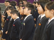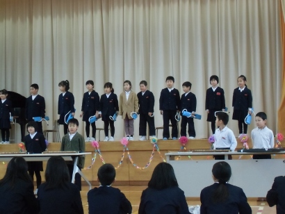 40周年の節目となるこの年、保護者の皆様、ご入学、ご進級、誠におめでとうございます。今年度は18名の新入生を迎え、全児童123名での出発となりました。子どもたちは「入学」や「進級」をきっかけとして、新たな気持ちでスタートを切ったのではないでしょうか。1年生は、元気な返事をしてみんなで「さんぽ」をうたいました。