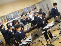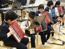 音楽の時間に合奏の練習をしています。なかなかリズムがとれなくて苦労していました。