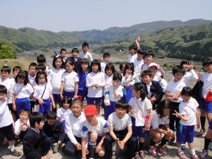 4年生は、総合的な学習で地域の史跡の「鳥越城跡」を調べに出かけました。地元の史跡であるにもかかわらず、行ったことのない人が半数以上いました。自分の足と自分の目を使って、まず、現地調査をすることにしました。何よりも頂上からの眺めに大感激でした。