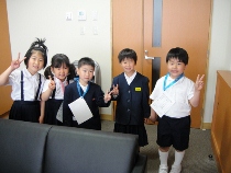 2年生が1年生をつれて、学校の中を案内してくれました。色々な教室をまわりながら、校長室へも立ち寄りました。「ここが校長室です。」「校長先生に用事がある人は、ノックをしてから入ってください。」など、上手に案内することができました。