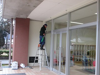 地域ボランティアの方が、玄関のガラス窓を磨いて下さいました。
