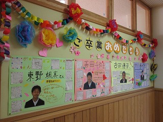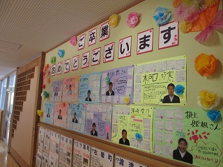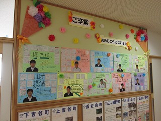 縦割り班ごとに、1枚シートをつくり、在校生がお祝いの