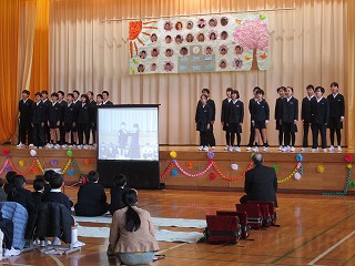 歌いました。六年生の眼は、その歌に釘付けでした。