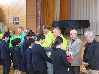 子ども達は、花束とお手紙を持って、感謝を伝えながら