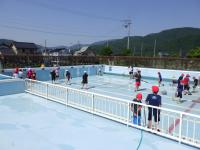 プールに水をはって、水泳の授業の準備を進めていきます。