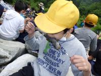 気が付くと鳥越の子ばかりが捕まえていませんでした。たくさんの友達に協力してもらって全員イワナを捕まえることができました。