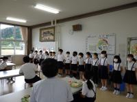 給食の時間に、音楽会に出る4~6年生へ向けて、3年生がメッセージを送っていました。