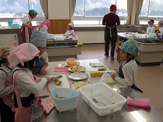 1年生が、『クリスマスパフェ』つくりを楽しみました。