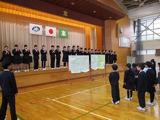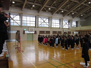 6年生の素敵なリコーダーの音色が体育館に響きました。